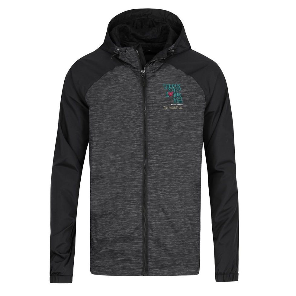 "Jesus Loves You" Brand Jackets | Men's Sport-Tek® Heather Hooded Wind Jacket | 100% Polyester Shell and Woven Sleeve Lining | For Sale Online | Free Shipping On $50+ Orders | Can Be Personalized